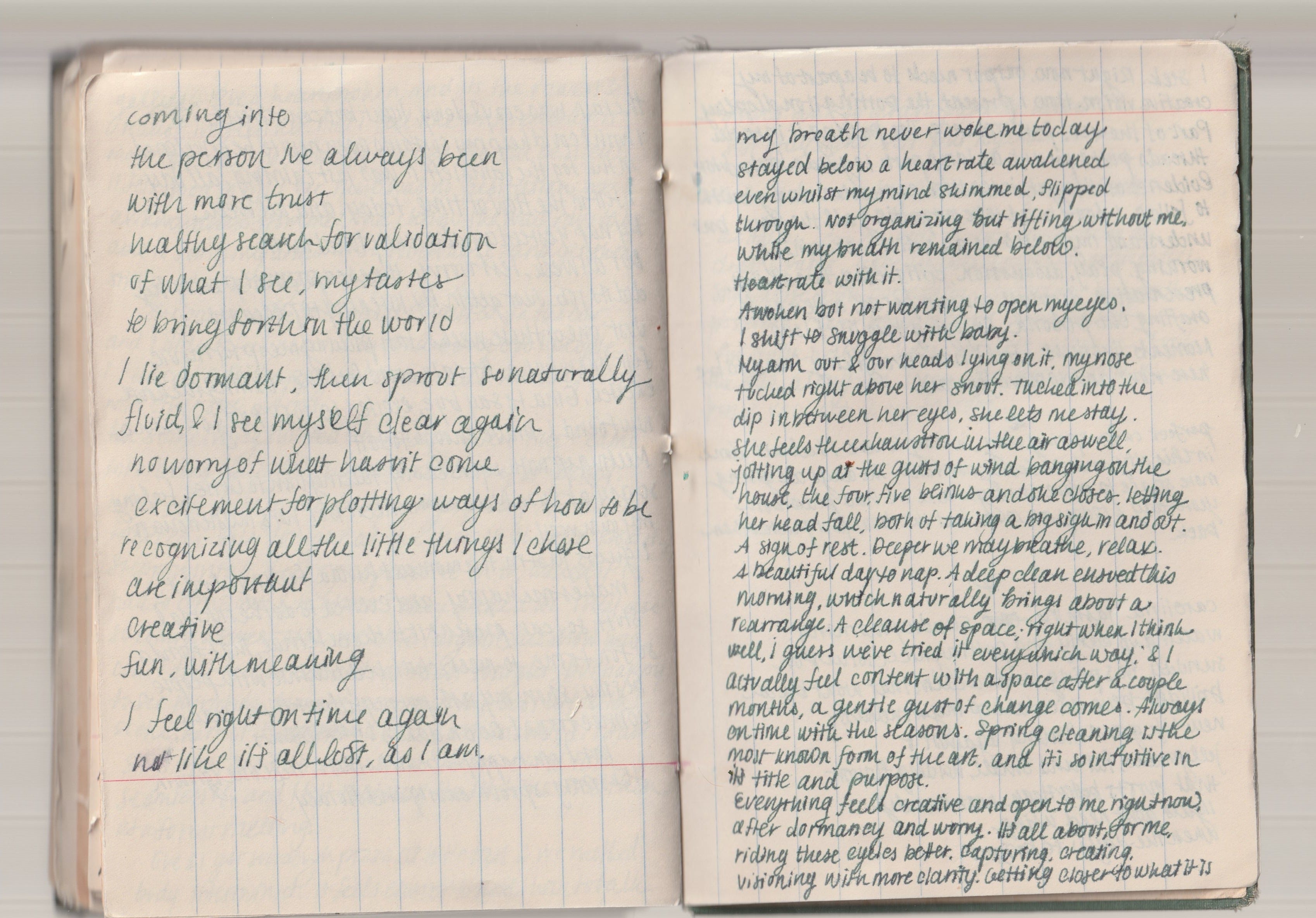 But I value this - mornings, free time, feeling. A container to be lost in play in. Which is why I can’t see past week to week & only three months out at a time. I want appointments that spark more creativeness and ways to do so in the future, but I don’t have a big vision. My vision is to create enough space and time each month, each season, so I’m not working so hard that I can’t feel, so that I can catch what it feels like to be alive on this day, in the next day. My vision, though still ambiguous, is to find work that will align with my own rhythms and movements. I want a creative reason to be some place. I have the bones for what I need yet no vision for the what I will do yet.